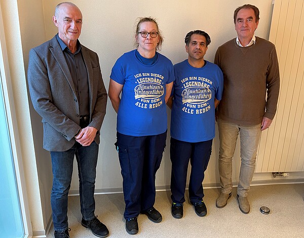 Was sie sich nun wünschen? „Ich möchte auf jedem Fall im Unternehmen bleiben,“, sagt Manuela Schenk. Das Drahtwerk habe schließlich viel für sie getan. Theo Wingen und Christof Bergmann freuen sich, dass sie die weitergebildeten Mitarbeiter nun vielleicht auch für neue Aufgaben einsetzen können. Ali Ahmadi unterstreicht das: „Ich habe in der Ausbildung viele neue Maschinen kennengelernt.“ So viel Engagement kommt gut an: „Hier haben wir zwei Mitarbeiter, die sich wirklich eingebracht haben“, lobt Theo Wingen. „Das gehört zu den heute ganz wichtigen ‚weichen Faktoren‘.“