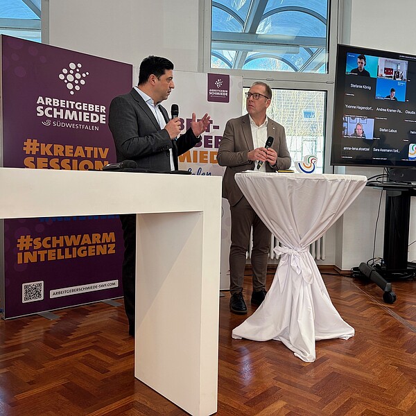Vorgestellt wurde anschließend eine beeindruckende Umfrage unter Mitarbeiterinnen und Mitarbeitern in der Region. Ergebnis: Südwestfalens Wirtschaft schneidet im Vergleich zu Deutschland insgesamt bei Mitarbeiterzufriedenheit, Mitarbeiterbindung und Familienorientierung überdurchschnittlich ab.